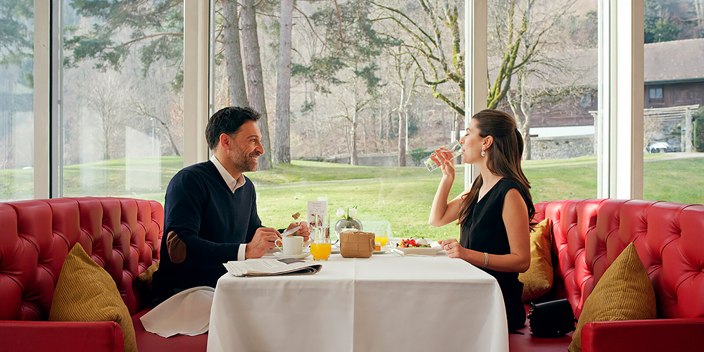 Рестораны и бары: IGNIV – гастрономический ресторан 1* гида Michelin. Открыт со среды по субботу для ужинов, по воскресеньям для обедов и ужинов. Расположен на первом этаже отеля Palais Bad Ragaz.