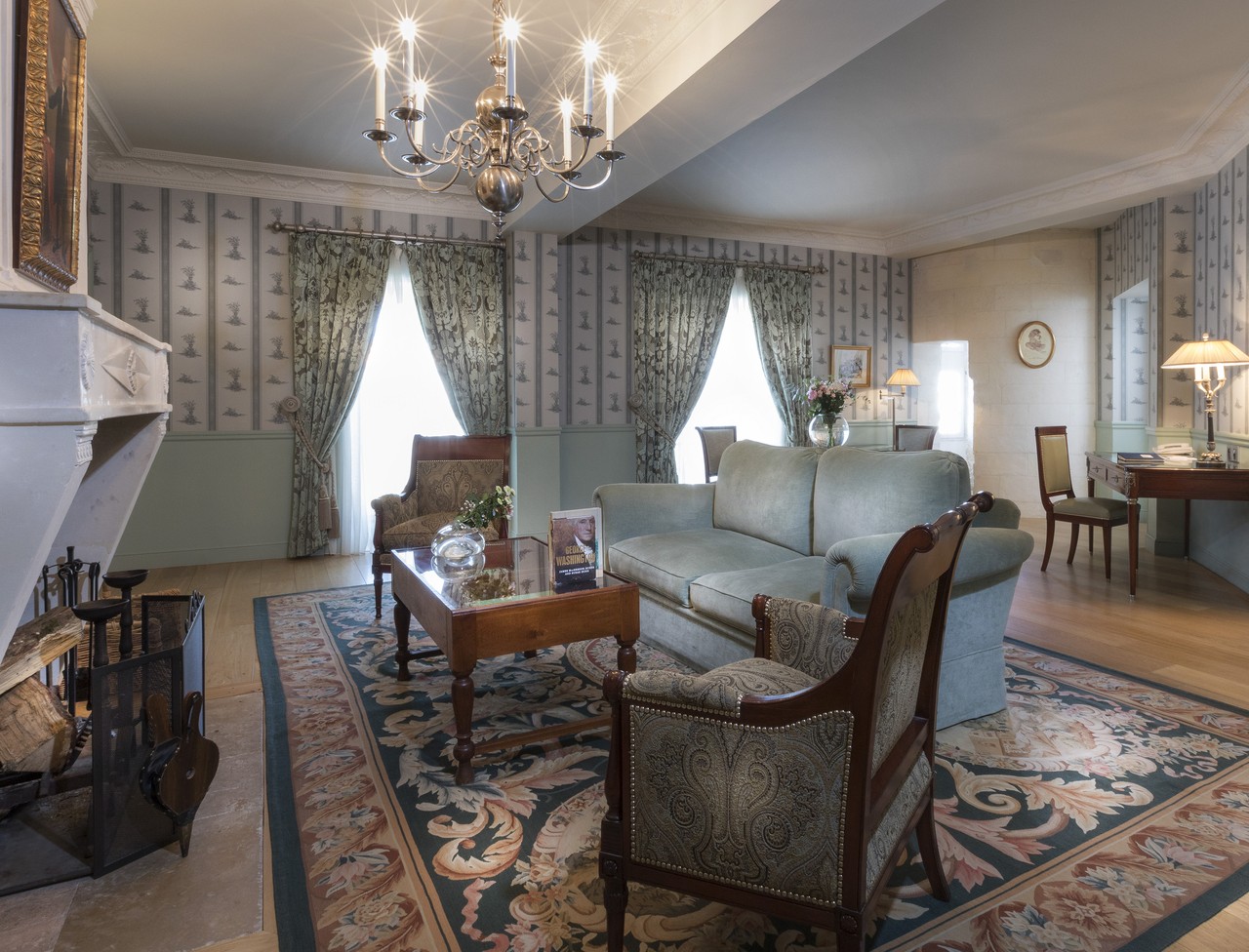 Для обивки мебели и занавесей использованы ткани домов Pierre Frey, Canovas, Ralph Lauren.