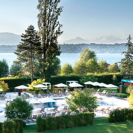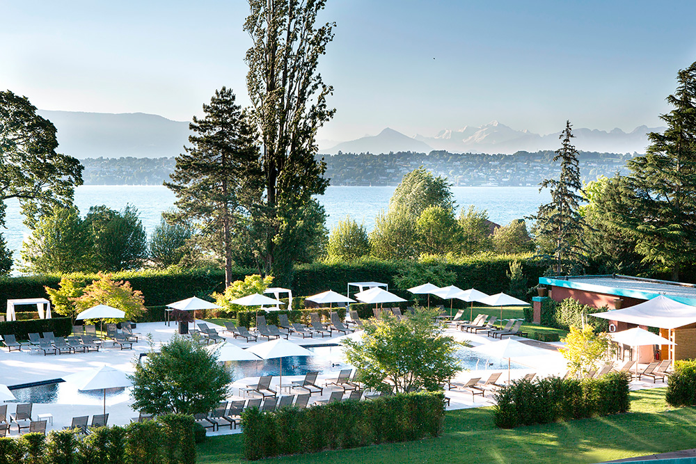 Отель расположен на берегу Женевского озера, в центре великолепного зеленого парка, в 5 км от центра Женевы и в 3 км от международного аэропорта. C конца марта до середины октября отель предоставляет клиентам бесплатный трансфер в центр Женевы на катере.