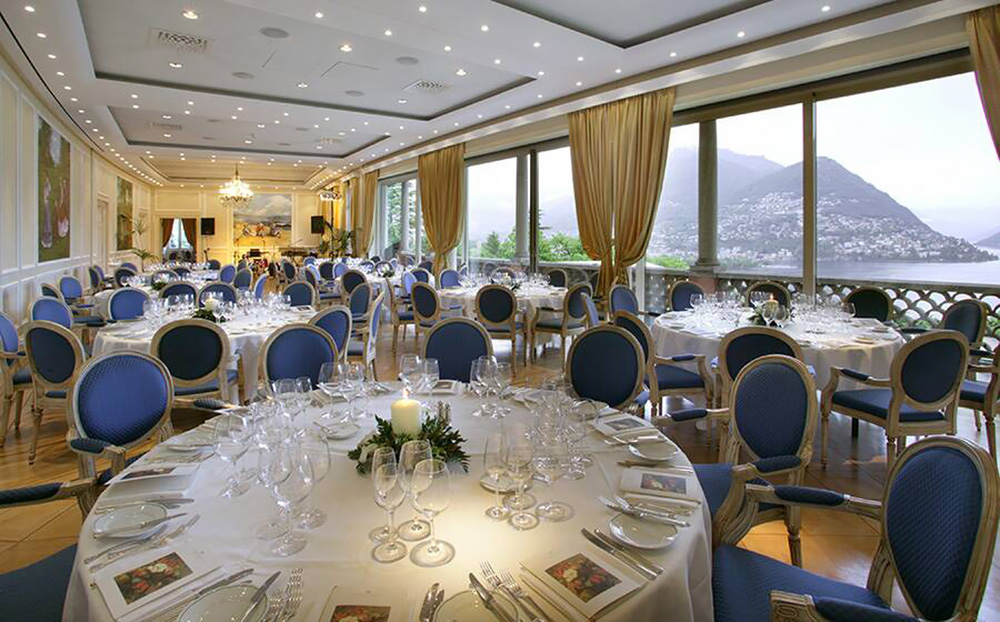 Рестораны и бары: Principe Leopoldo – главный ресторан. Международная кухня. Широкий выбор вин, коньяков, виски. Отмечен в гиде «Мишлен». Имеет открытую террасу, где сервируются обеды. Limonaia – ресторан. Шведский стол, легкие закуски. Открыт для завтраков и обедов. Cafe Leopoldo – ресторан. Швейцарская и итальянская кухня. Открыт для завтраков, обедов и ужинов с марта по октябрь. Часть столиков расположена на открытом воздухе. Bar Principe – коктейли, вина, виски, сигары. Имеет открытую террасу. Живая музыка. Bar Principe Lounge – коктейли, легкие закуски. Большой выбор кубинских сигар. Имеет открытую террасу. Вид на горы, озеро и город. Живая музыка с 20:00 до 01:00
